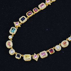 럭셔리 트렌디 다채로운 보석 지르콘 인 기하학 조정 가능한 여자의 황동 플래티넘 도금 기념일 세트 목걸이 도매
