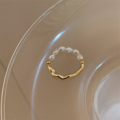 여성용 패션 18K 골드 기하학적 주얼리 조절 가능한 탄성 로프 진주 반지